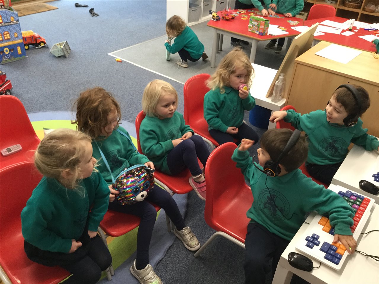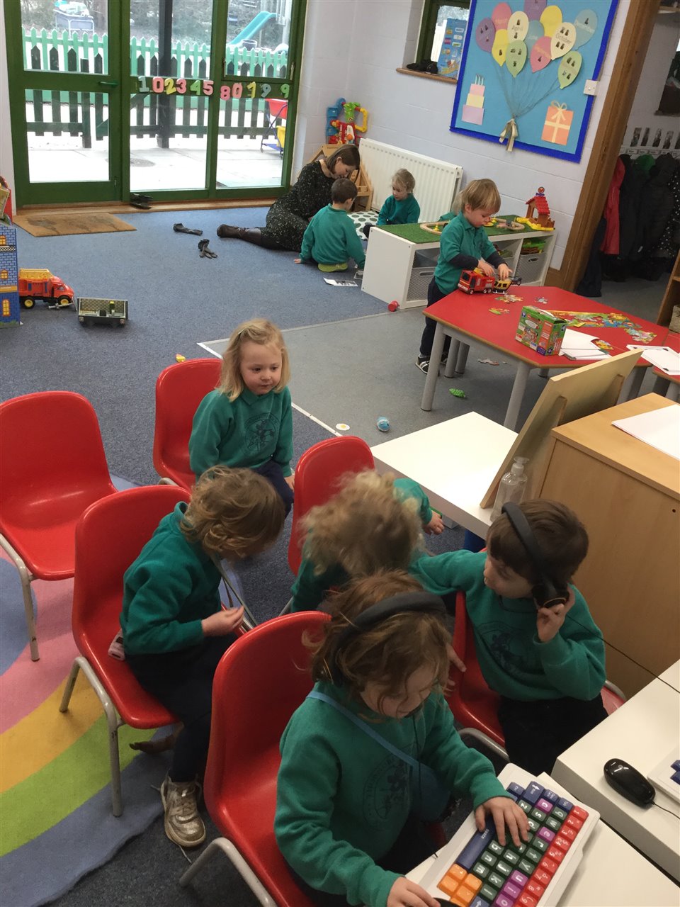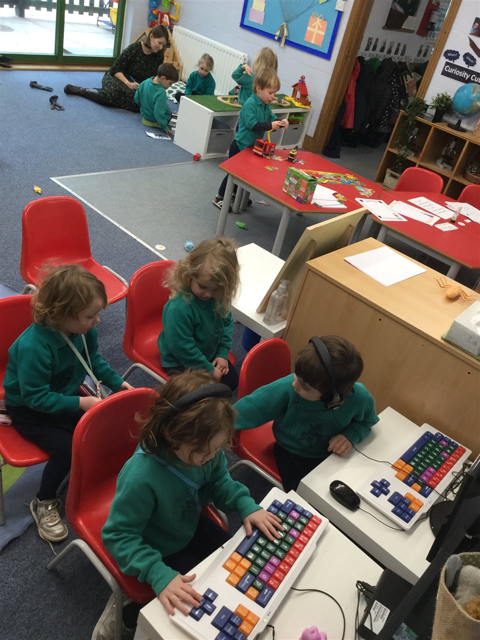 Nursery initiated their own game of aeroplanes and joined in together for a long time flying to new places.