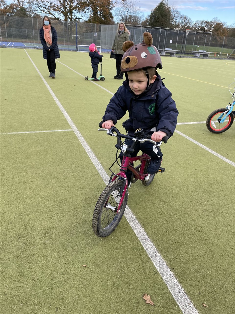 Finally we headed off to the astro to practice using our bikes and scooters safely.