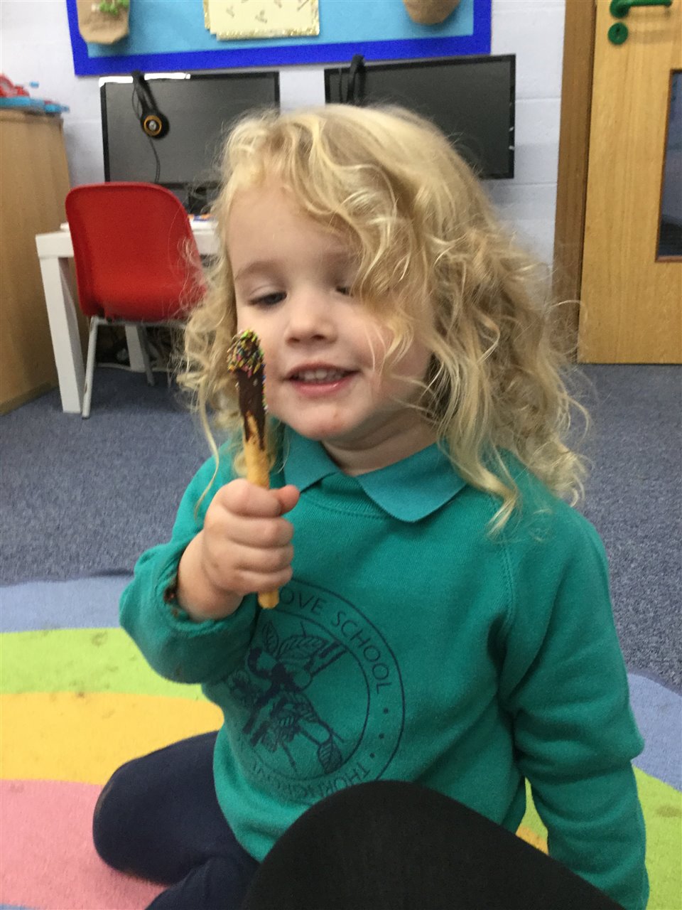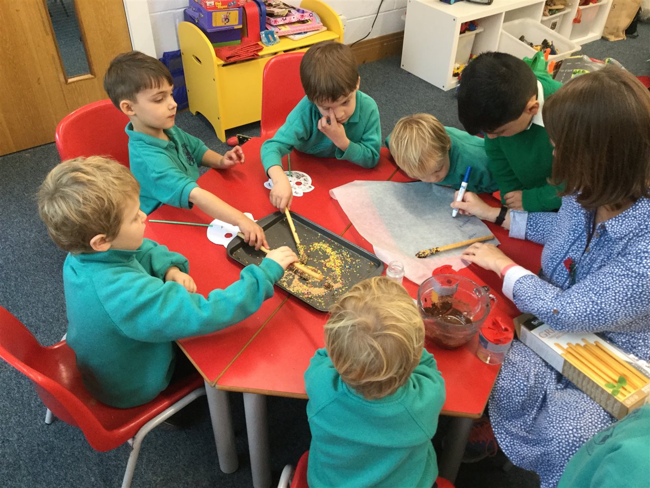We made our own yummy sparklers using breadsticks, chocolate and sprinkles!